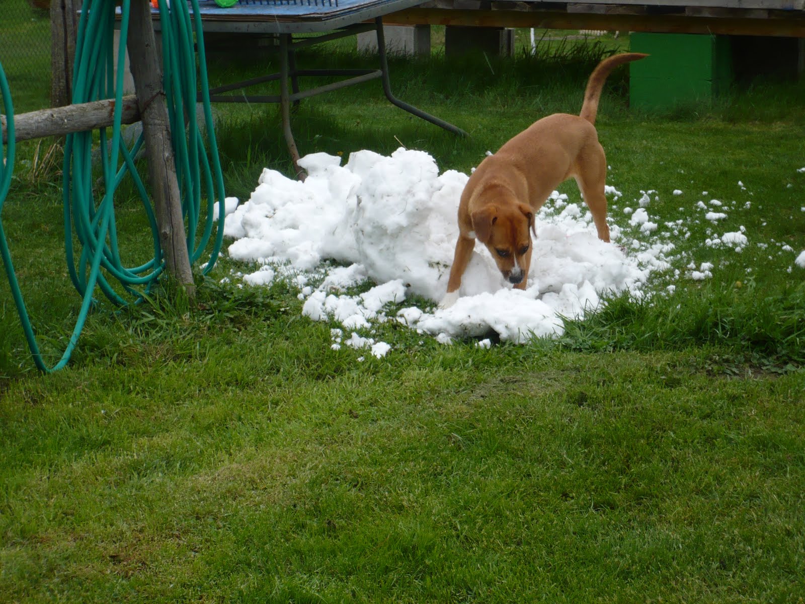 It's been a couple of hours now and the snow is still falling. But, oh so slowly now.